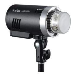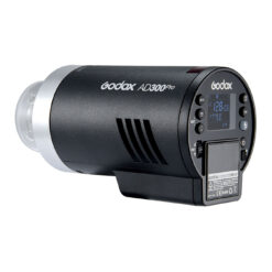 Designed for **on-location and studio use**, the **Godox AD300Pro** delivers **impressive performance** in a **compact monolight form factor** weighing just **2.8 lb**. Free from AC power constraints, its **lithium-ion battery** provides **up to 300 full-power flashes**, with **fast recycle times** from **0.01 to 1.5 seconds** and a **9-stop power range**. **High-speed sync (HSS) up to 1/8000 sec** and **action-stopping flash durations from 1/220 to 1/10,200 sec** make it a reliable choice for dynamic shooting scenarios.