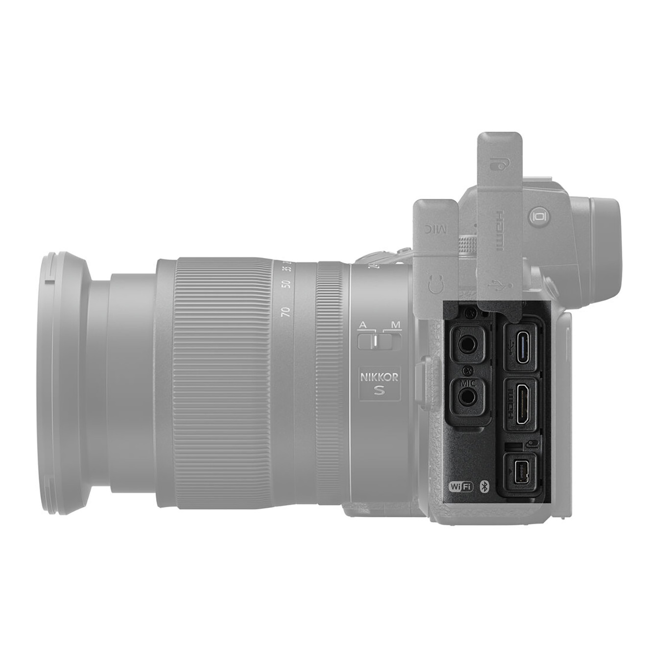 Advanced video features have been added to the Z6 II, including N-Log gamma for maximizing dynamic range and HLG (HDR) for capturing HDR-ready footage. The camera can output high-quality 10-bit data over HDMI and includes an Electronic VR function for steady handheld shooting. Focus Peaking aids manual focus control, while the Zebra Stripes option helps detect over-exposed areas in the frame. Audio recording can be done using the built-in stereo microphone or an external mic connected via the 3.5mm stereo jack. Live monitoring is possible through the headphone jack.
