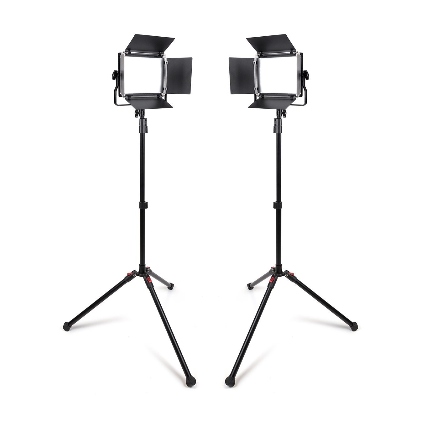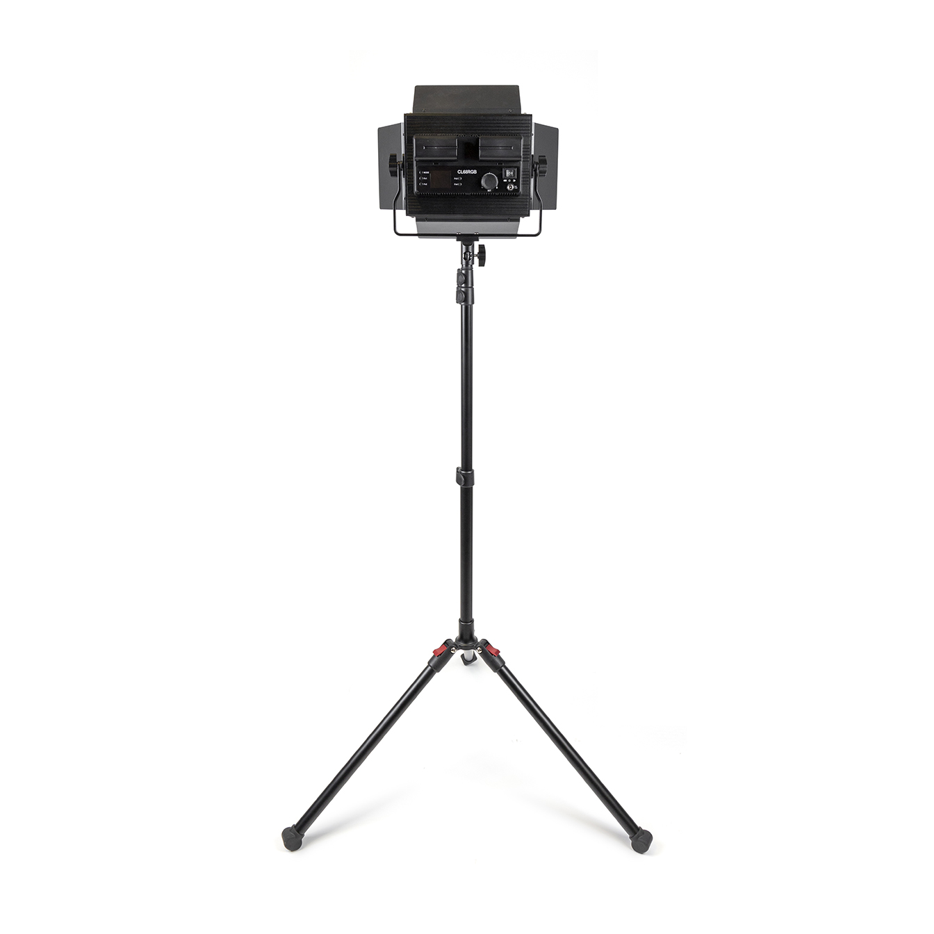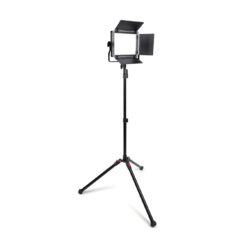 The 2-Light Transport Kit is a comprehensive lighting solution that includes 2 Chroma CL68RGB lights equipped with 4-panel barn doors, 2 LS-RF 6 1/2′ light stands, and 2 AC adapters. The collapsible light stands offer easy portability, and their independently adjustable legs ensure stability on any terrain. Use the weight hooks on each stand for added steadiness when needed.